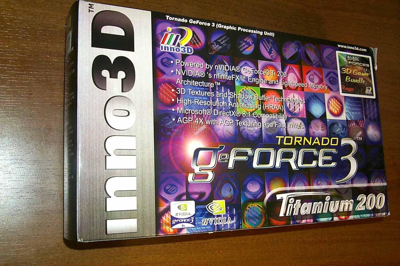 На этом мы и закруглимся с разбором семейства «Титанов». Перейдем к более насущному рассмотрению очередных серийно выпускаемых карт на базе некоторых представителей NVIDIA Titanium. А перед началом рассмотрения Inno3D Tornado GeForce2/3 Titanium я напомню, что вся теоретическая база, связанная с GeForce3, сосредоточена в серии наших первых обзоров; там же можно ознакомиться и с особенностями видеокарт на этом процессоре в целом, а также работой карт на новейших тестах-бенчмарках.