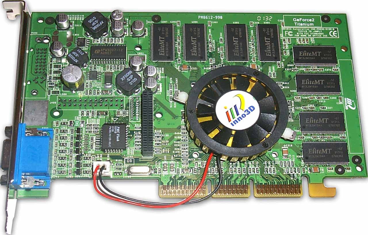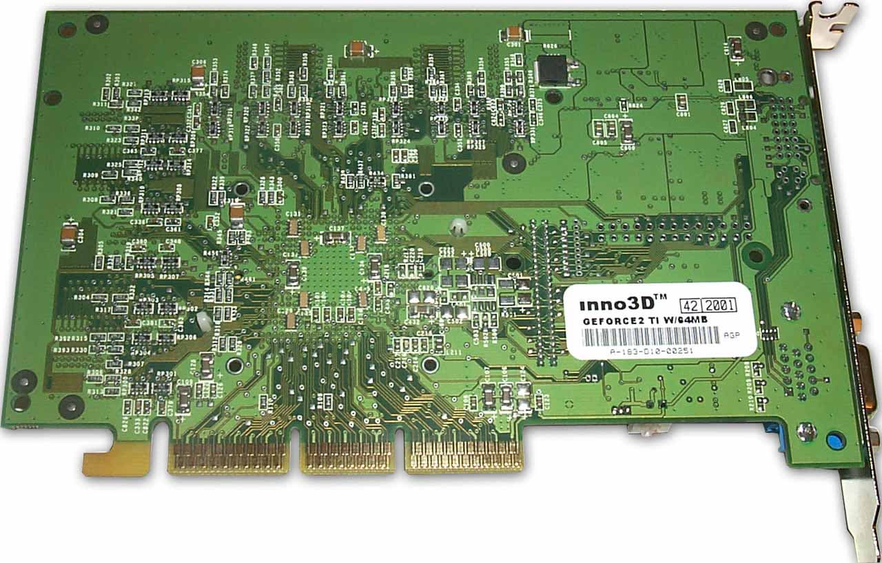 - GeForce2 Ti вообще использует PCB от карты на GeForce2 Pro, поэтому от последней ничем не отличается (кроме цвета PCB)