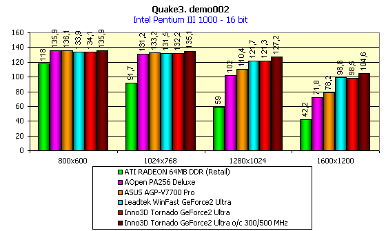Подведем итоги анализа производительности рассмотренной платы Inno3D Tornado GeForce2 Ultra: