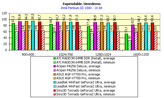 - Rage Expendable (timedemo) — игровой тест, демонстрирующий работу платы в Direct3D в режиме мультитекстурирования.