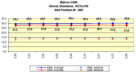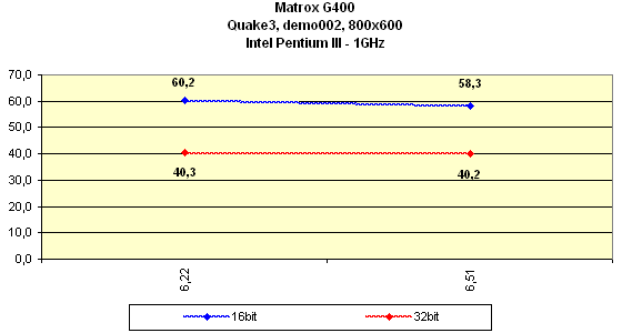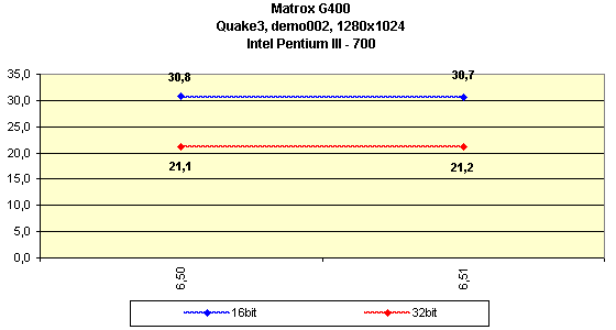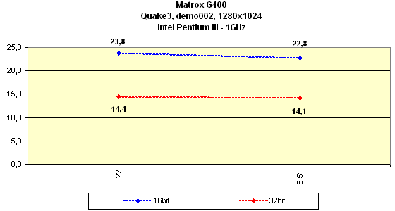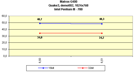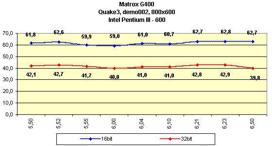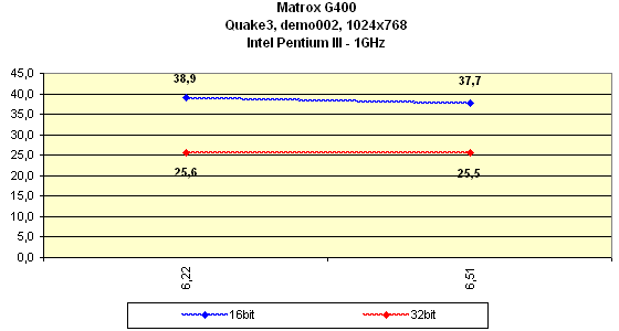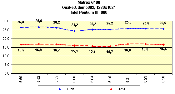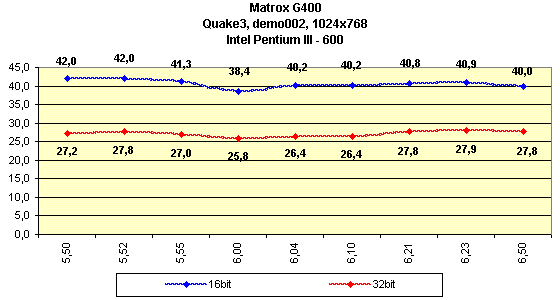 На 20-е августа 2001 года последняя версия драйверов от Matrox — PowerDesk 6.70. Результаты тестов можно увидеть в сводных диаграммах.