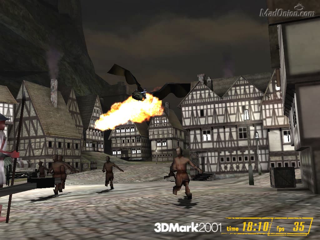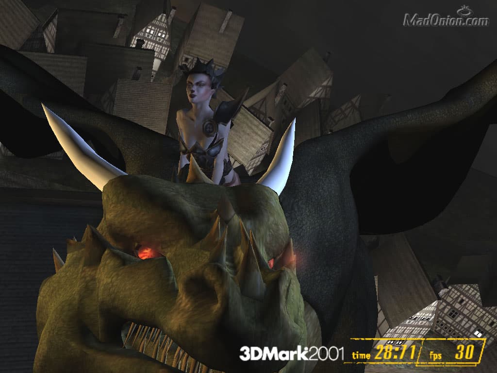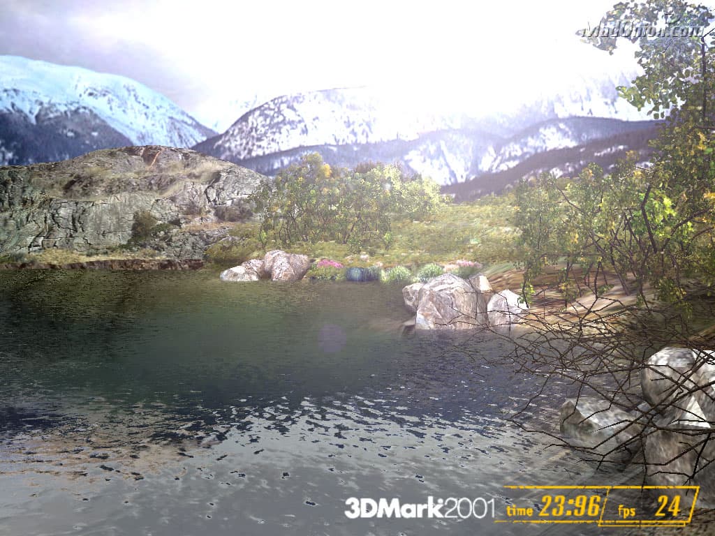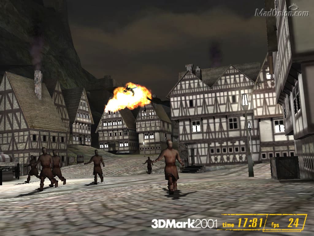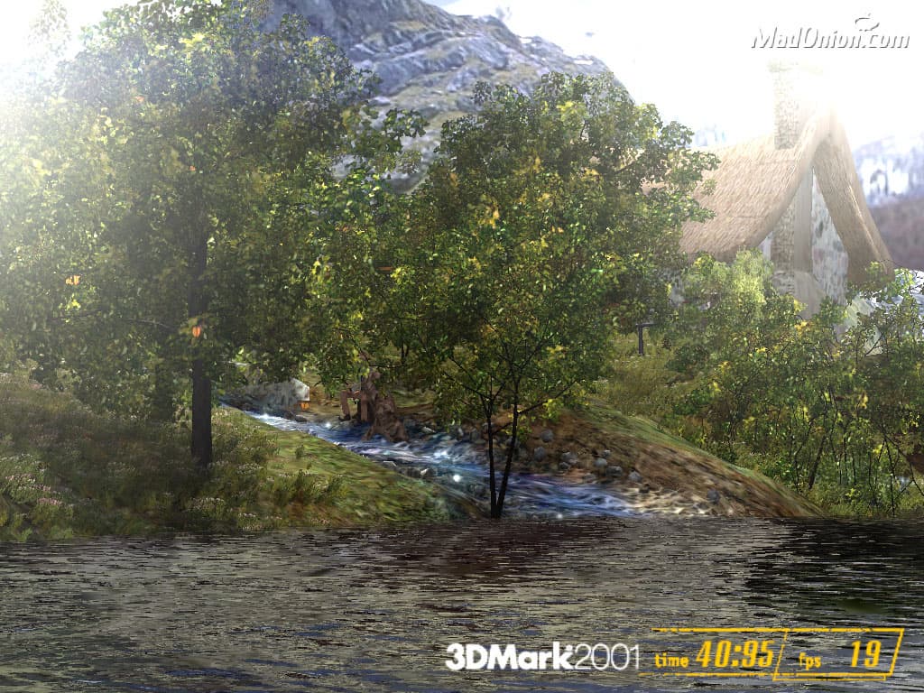 Должен обратить ваше внимание на то, что на ряде старых версий драйверов в некоторых сценах 3DMark2001 есть глюки вот такого плана: