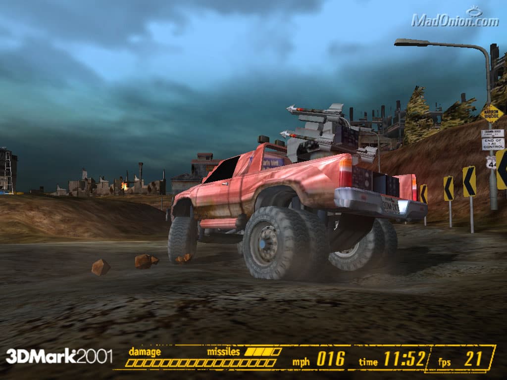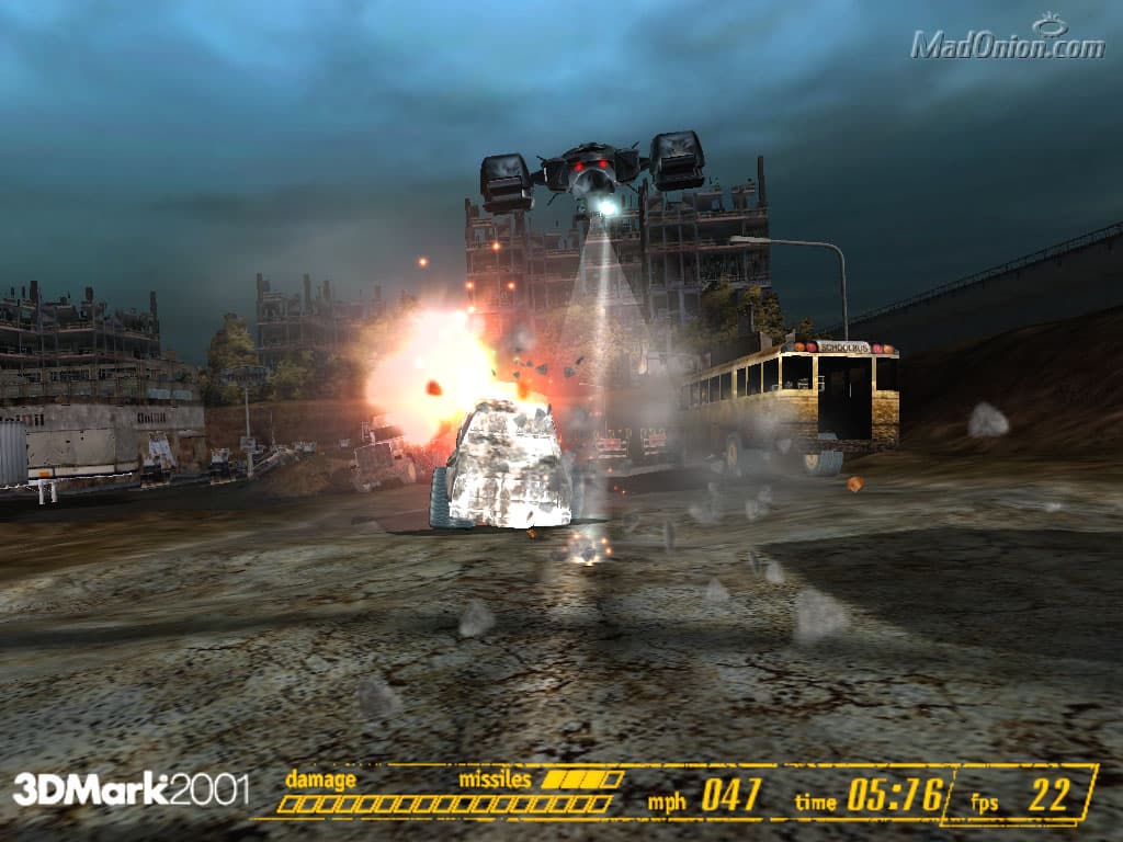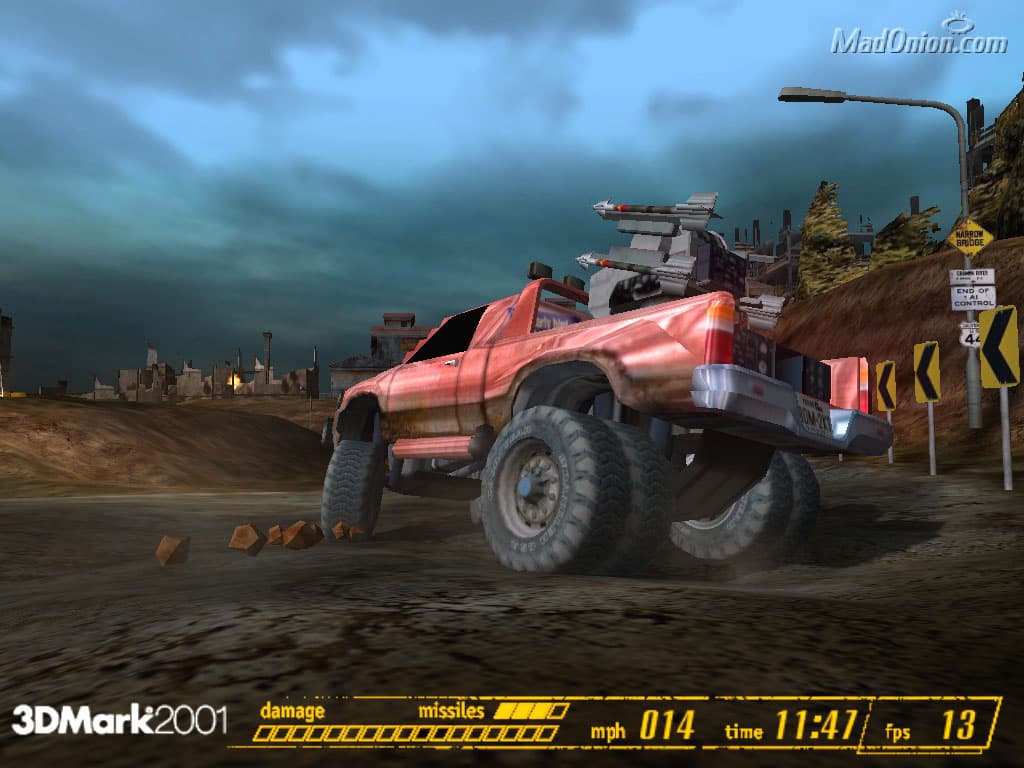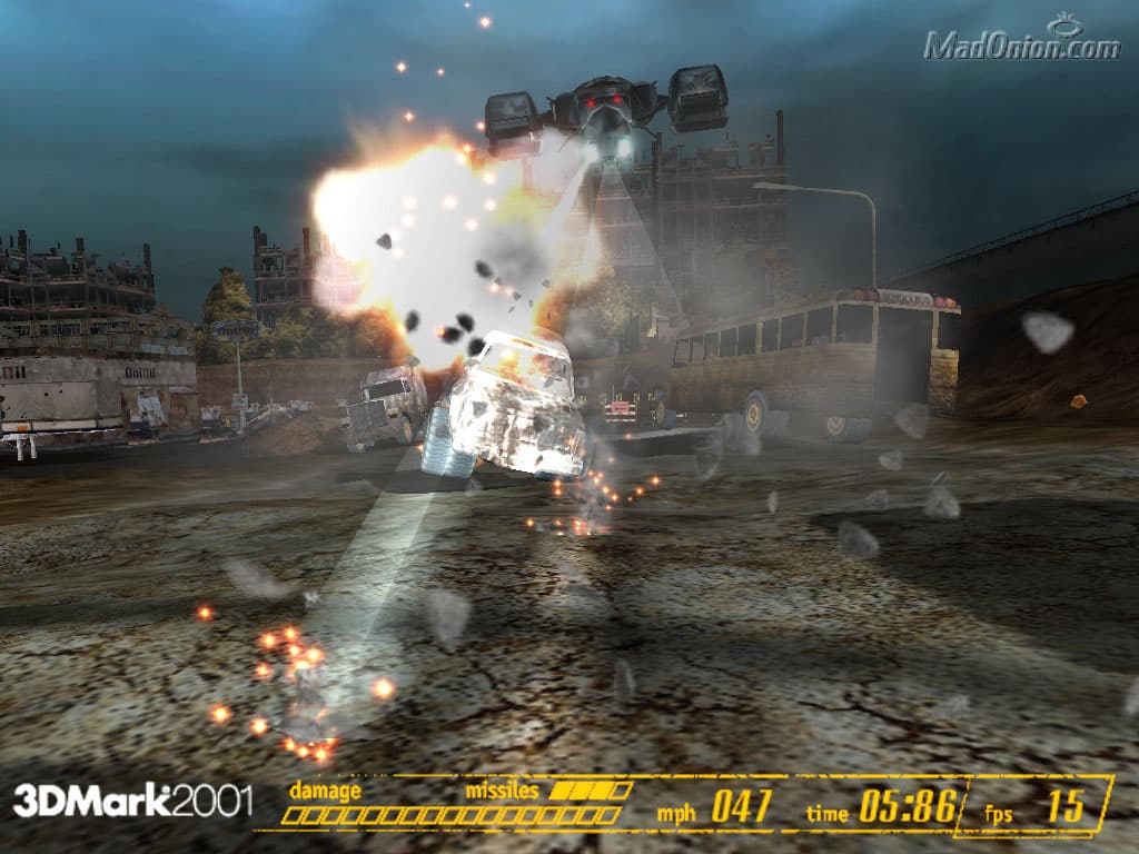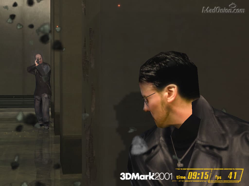 Должен обратить ваше внимание на то, что на ряде старых версий драйверов в некоторых сценах 3DMark2001 есть глюки вот такого плана: