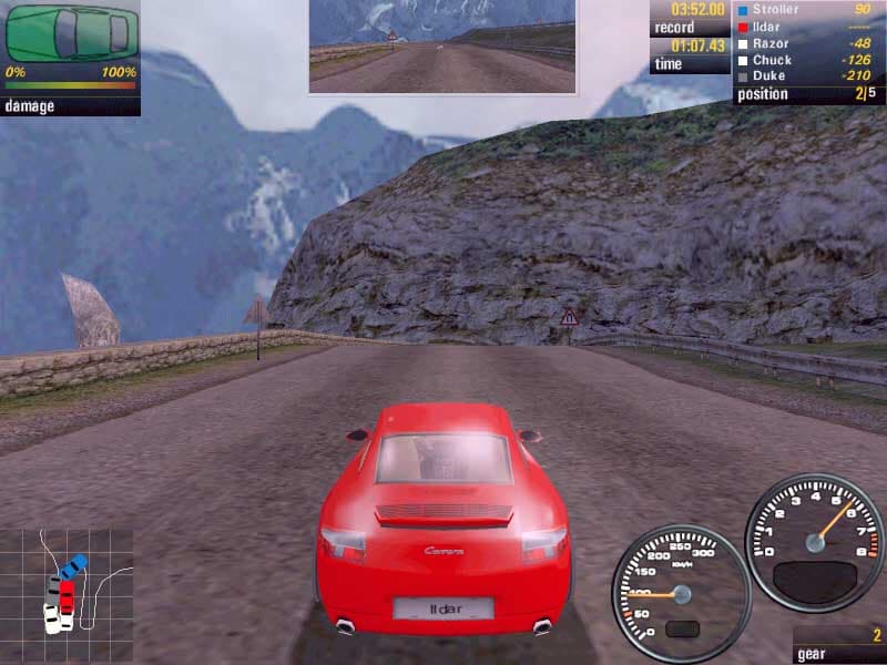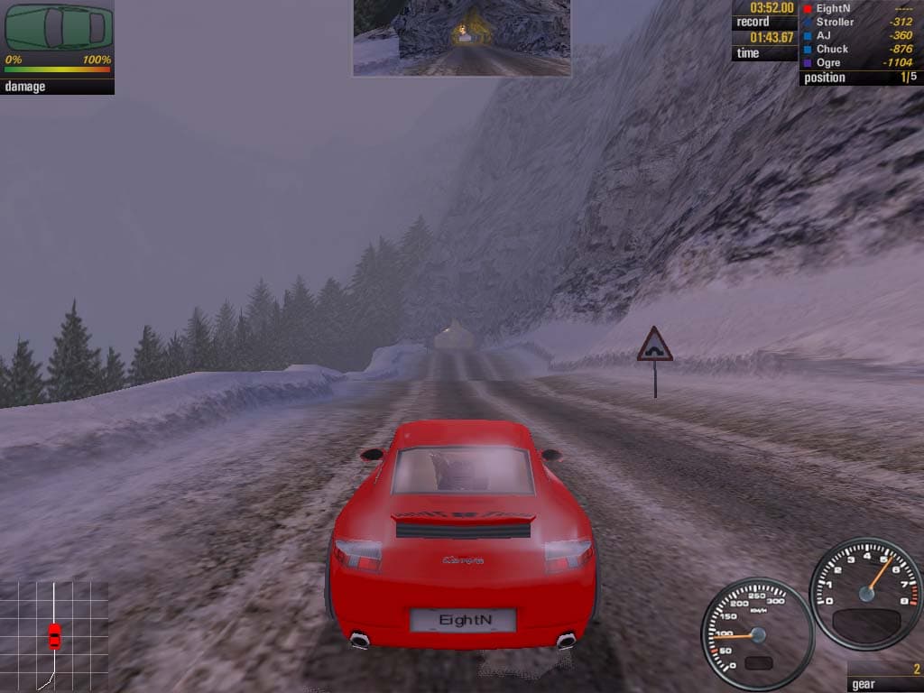 Ниже представлены скриншоты из ряда игр, полученные на RADEON, а также приведены эталонные скриншоты, полученные на NVIDIA GeForce3. Прошу обратить внимание на игру Need For Speed: Porshe 2000. Как уже много раз говорилось, у всех карт фирмы ATI в этой игре напрочь отсутствует туман. Однако при помощи утилиты RadeonTweaker или путем внесения изменений в registry можно получить этот эффект. Требуется включить WFogEnable и TableFogEnable.
