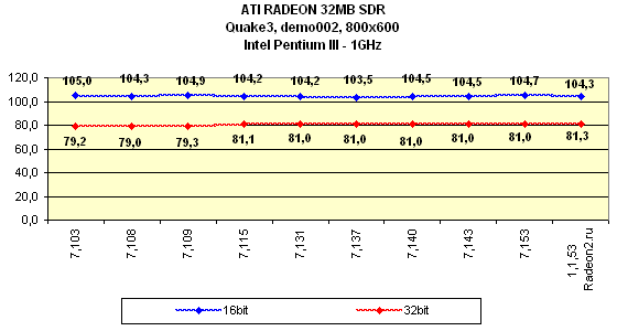 Я особо отмечу, что на всех версиях драйверов, начиная с 7.115, тестирование проводилось при активированной S3TC, поэтому результаты в Quake3 на этих версиях выше, однако надо сказать, что на этих же версиях компрессия текстур почему-то отказалась работать на платформе i815 (Pentium III). То есть, Quake3 просто игнорировал эту функцию при испытаниях.