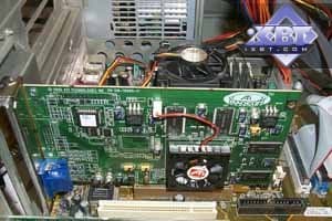 - память — 32MB SDR SDRAM в 4-х микросхемах Micron 6ns, частота работы 160 МГц, 128-битная шина обмена с чипсетом;
