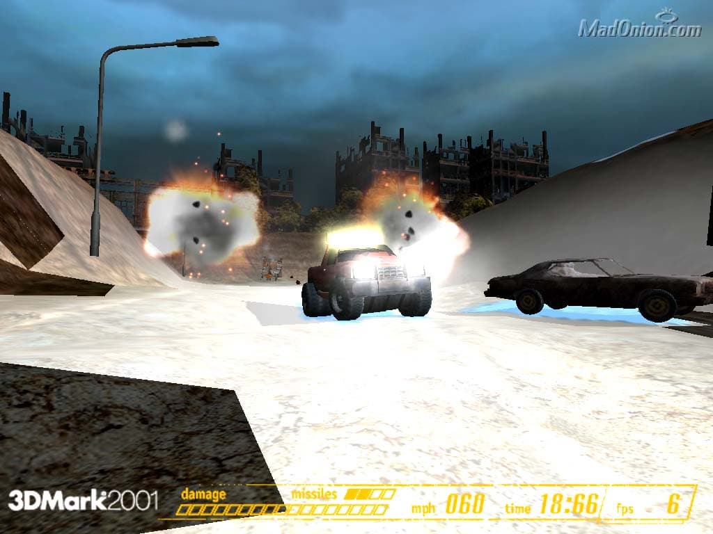 Как мы видим, в Need For Speed: Porshe 2000 туман отсутствует, а в 3DMark2001, Game1 можно видеть очень неприятную картину: