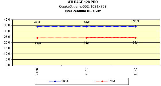 Платы на ATI RAGE 128 PRO появились поздней осенью 1999 года как запоздалый ответ со стороны ATI на NVIDIA Riva TNT2 Ultra, однако в то время все увереннее прокладывал себе путь NVIDIA GeForce256, поэтому ATI RAGE 128 PRO остался без шансов быть востребованным. Плюс опять задержки с поставками, и реально эти карты появились на прилавках лишь зимой 2000 года, когда не за горами уже был NVIDIA GeForce2 GTS. Однако резкое снижение цен на RAGE 128 PRO — карты очень им помогло, и своих покупателей карты нашли. К сожалению, катавасия с драйверами до настоящего времени портит имидж этих карт.