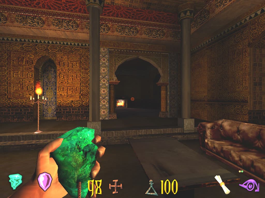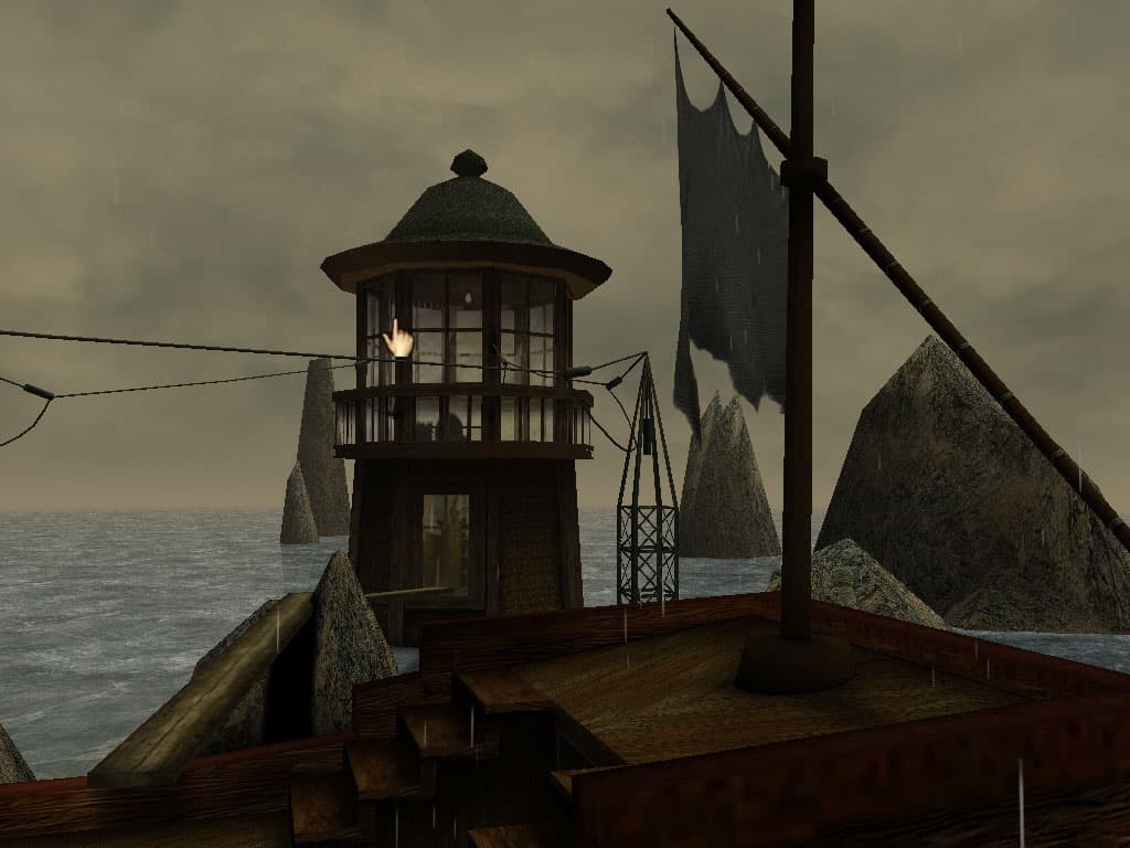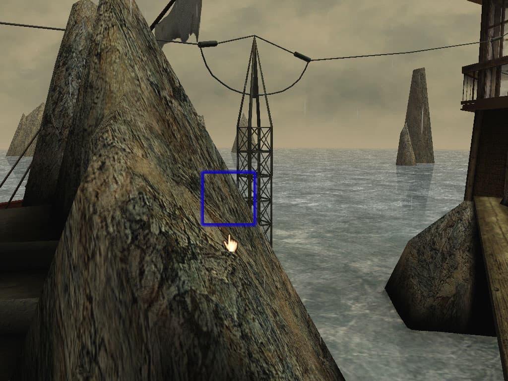 В игре Real MYST можно видеть очень неприятное явление в виде муара, мерцания текстур, "песочка" по склонам скал: