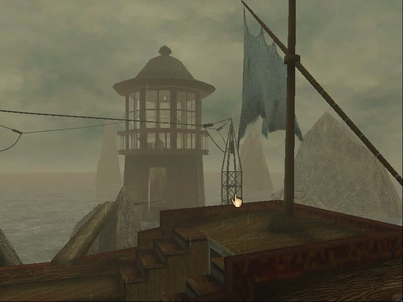 В игре Real MYST можно видеть очень неприятное явление в виде муара, мерцания текстур, "песочка" по склонам скал:
