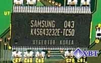 Микросхемы памяти произведены Samsung, номинальное время выборки 5 ns, что соответствует частоте 200 МГц. Однако модули, как и сам графический процессор, функционируют на частоте 175 МГц.