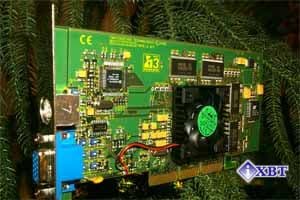 Дизайн платы (как вы, наверное, уже заметили по самой верхней фотографии), очень сходен с дизайном серийно выпускаемой карты VideoLogic Vivid! на базе первого чипа KYRO (на нашем сайте вскоре появится и ее обзор). В общем, ничего лишнего, только чип и модули памяти, да схема TV-out, традиционно снабженная S-Video выходом.
