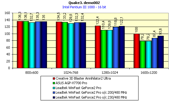 В целом, показатели производительности видеокарты Leadtek WinFast GeForce2 Pro весьма высоки и должны удовлетворить самых притязательных игроков.
