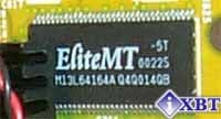 Чипы памяти произведены фирмой EliteMT и рассчитаны на рабочую частоту 200 (400) МГц. На этой частоте память и функционирует. Замечу, что нередко приводятся только результирующие значения тактовой частоты DDR памяти, которые вдвое больше и выглядят более внушительно, хотя суть от этого не меняется. То есть, если говорится, что частота работы DDR-памяти равна 400 МГц, то на самом деле она работает на частоте 200 МГц.