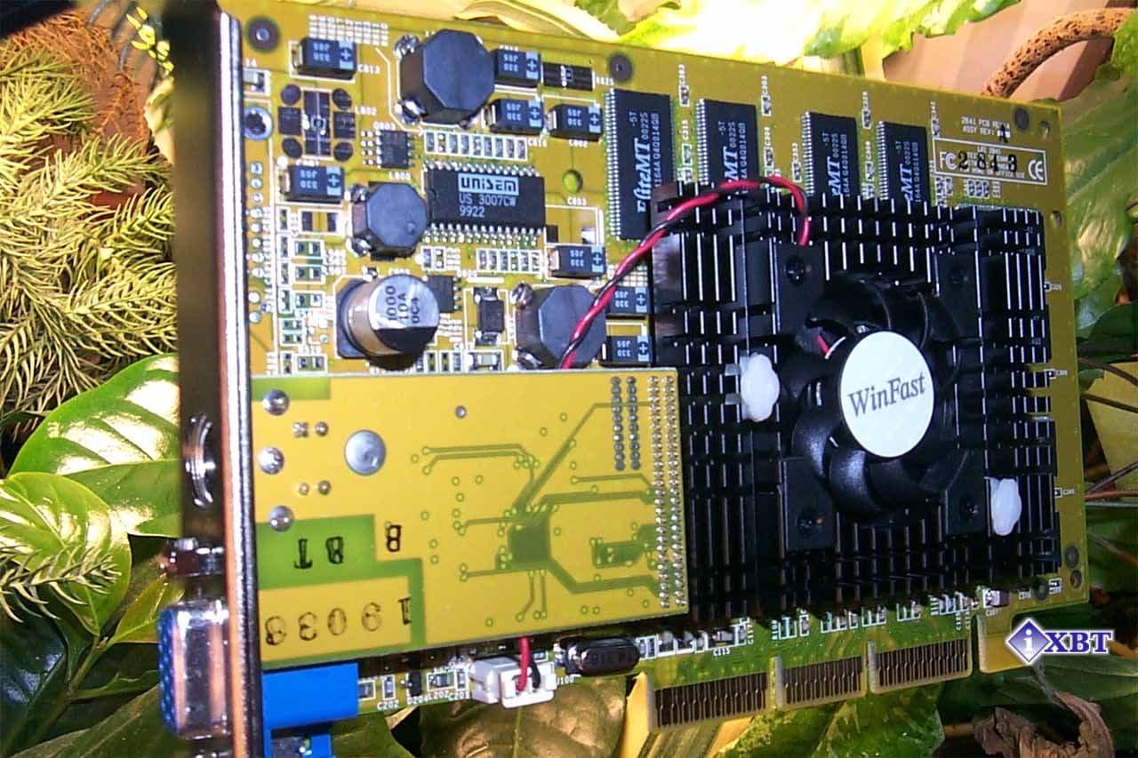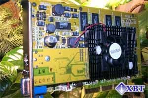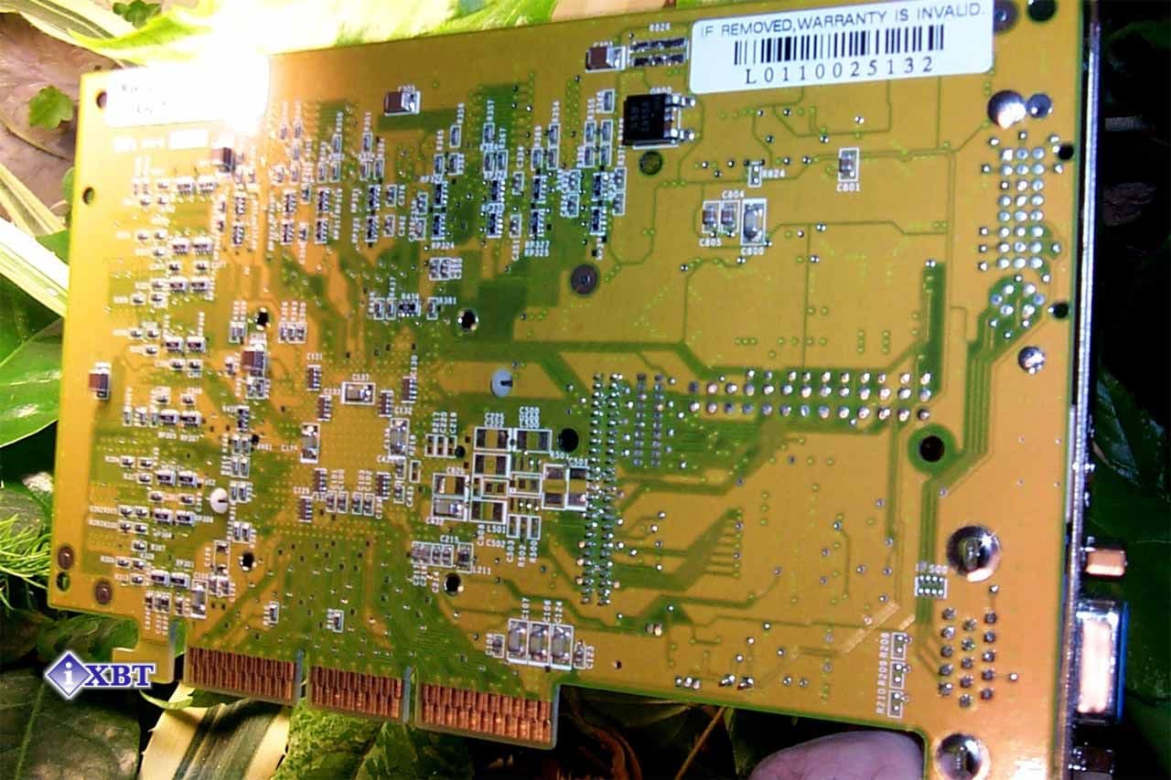 Карта имеет AGP2x/4x интерфейс, 64 Мб 5 ns DDR SDRAM памяти, размещенной в 8-ми чипах, расположенных на лицевой стороне PCB: