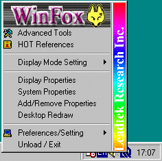 Началом работы WinFox можно считать появление пиктограммы в панели задач внизу справа, которая запускает диспетчер настроек и опций: