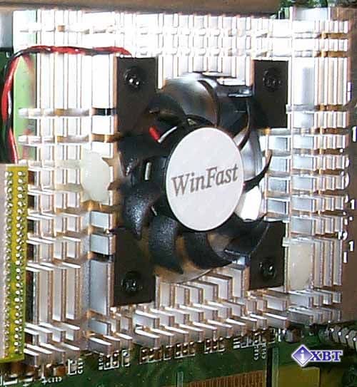 Конструкция самого радиатора ничем не отличается от стандартной на платах последних выпусков от Leadtek. Эффективность такого кулера, к сожалению, не столь велика из-за довольно слабого вентилятора, установленного в центре радиатора. Разница между старым кулером и ныне описываемым — лишь в цвете.