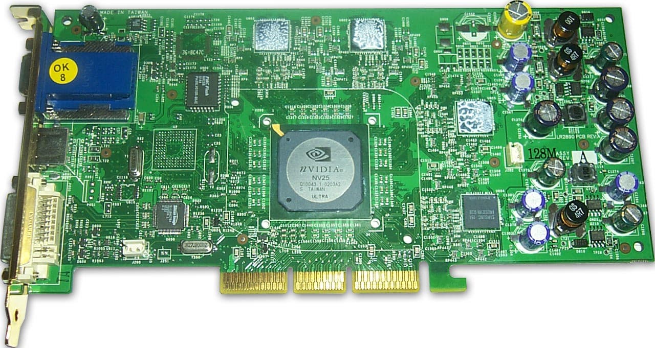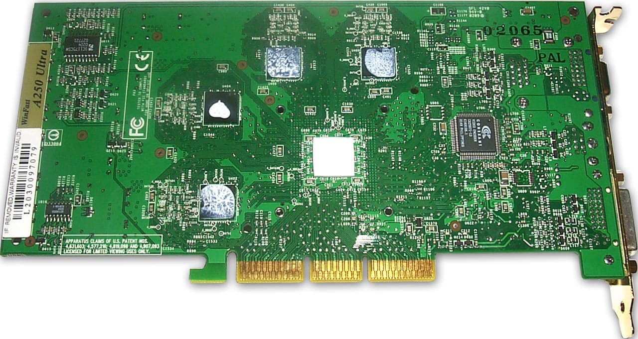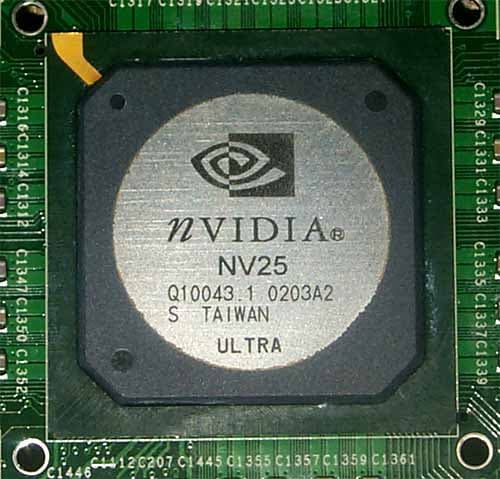 Как мы видим, маркировка на чипе еще содержит кодовое название NV25 (что неудивительно, если посмотреть на срок выпуска — 3-я неделя 2002 года, то есть январь, а это еще до официального анонса GeForce4).