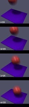 Для получения motion blur нужно проделать операции, подобные описанным выше. Метод для сглаживания готовых изображений называется spatial anti-aliasing, что означает сглаживание всего изображения. А метод, применяемый для motion blur, называется temporal anti-aliasing, означающий сглаживание переходных процессов во времени.