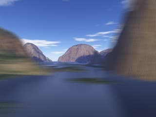 Это две совершенно одинаковых сцены, только одна отрендерена для случая, когда камера двигается вперед, а вторая — для движения камеры влево. Наверное, вы сразу поймете, где какой рисунок. :) При просмотре анимации ваш мозг получает эту дополнительную информацию о размытости, смена кадров представляется плавной, и, как результат, мы получаем значительно более реалистичную имитацию движения.