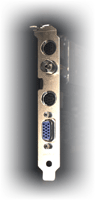 В отличие от обычной DualHead на этой плате всего один мониторный выход (15-pin). Вместо второго выхода присутствуют гнезда для двух внешних коммутационных хвостов. Первый отвечает за ввод сигналов и содержит композитный вход типа "тюльпан", S-Video вход и два "тюльпана" для ввода стереозвука. Второй "хвост" имеет композитный выход "тюльпан", S-Video выход и стереоразьем типа minijack для подключения к линейному входу звуковой карты.