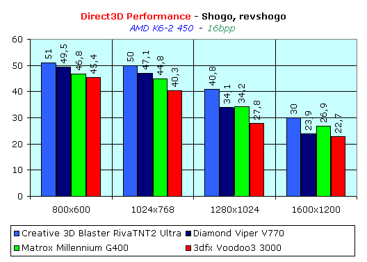 - Monolith Shogo — игра 3D-шутер, позволяющая оценить работу платы в Direct3D в режиме мультитекстурирования (использовалась демо Revshogo);