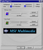 Карта MSI GF2Pro Plus-T64D (MS 8831) позволяет повысить частоты работы до значений 240/230 (460) МГц, что не является рекордом среди подобных карт, однако уже почти приблизил карту к "ультре" (NVIDIA GeForce2 Ultra).