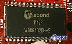 Микросхемы памяти Winbond, время выборки 5ns, что соответствует частоте в 200 МГц. Должен с радостью отметить, что память работает именно на этой частоте. Таким образом, мы видим, что на рынке появился еще один MX400 с частотами 200/200 МГц (первым был ASUS AGP-V7100 Pro). Это несомненно радует, поскольку многие видеокарты, имеющие на борту более быструю, чем положено по номиналу, память, обычно тактуются стандартными частотами.