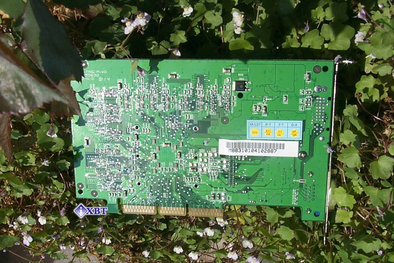 Дизайн платы полностью схож с ранее рассмотренной нами картой ABIT Siluro T400. Отличие состоит лишь в цвете PCB. Мы можем заметить, что точно также, как и в случае карты от ABIT, на процессоре установлен только радиатор, вентилятора нет. Поэтому о разгоне GPU можно особо и не мечтать, не установив дополнительного охлаждения. Впрочем, для GeForce2 MX400 это и неважно, когда производительность полностью зависит от быстродействия видеопамяти.