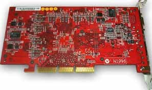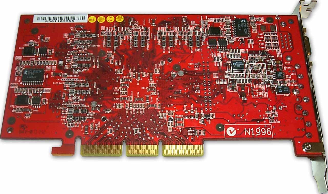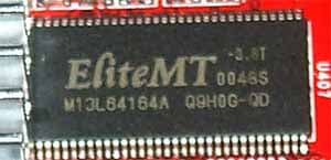 Микросхемы памяти марки EliteMT, время выборки 3.8 ns, что соответствует примерно 263(526) МГц. Точно такой же памятью комплектуются карты на базе GeForce3. Как известно, все видеокарты на базе GeForce3 Ti 500 имеют память, работающую на частоте 250 (500) МГц, поэтому производители не стали устанавливать более быструю (а значит и существенно более дорогую) память, поскольку запаса прочности и ныне используемой 3.8 ns памяти достаточно. К тому же, как мы уже неоднократно убеждались, новая PCB (и новый дизайн) способствуют тому, что даже такая память может работать на частотах вплоть до 295 (590) МГц, чего невозможно получить на GeForce3 — картах.