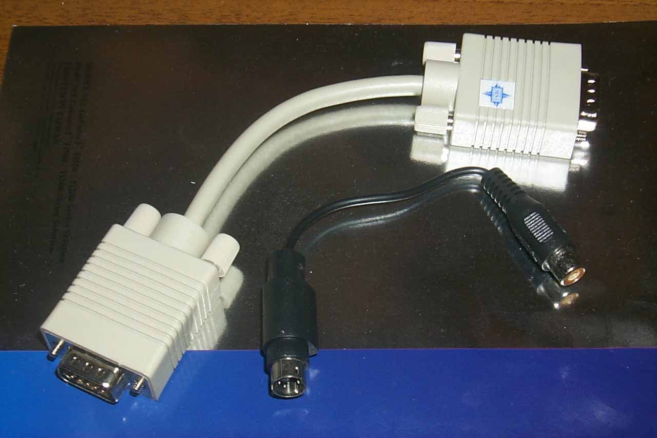 Как я уже говорил выше, в комплект поставки входит и этот переходник VGA-VGA (на снимке вы можете увидеть и его, и переходник S-Video-to-RCA для VideoIn):