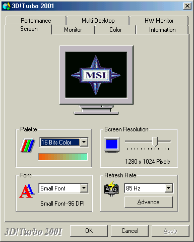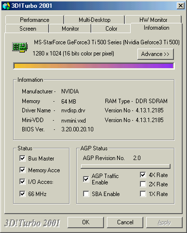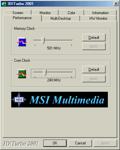 С видеокартой поставляются драйверы версии 14.61, которые не знают еще Ti 500, поэтому использовались драйверы последней устойчиво работающей версии 21.85. Однако особое внимание стоит обратить на утилиту 3D Tools от MSI: