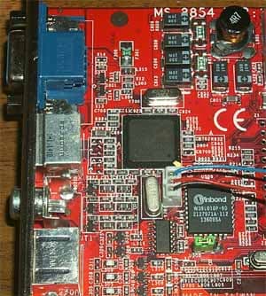Слева, прямо напротив чипа-кодера находится гнездо для подключения VideoIn (гнездо S-Video, однако в комплекте есть переходник S-Video-to-RCA для этих целей). TV-out оборудован двумя гнездами, поэтому проблем с выводом картинки на телевизор у владельцев видеотехники, не имеющей S-Video-разъемов, не будет.