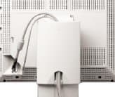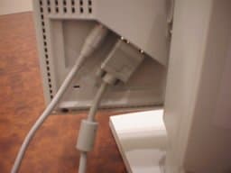 Скажем сразу, что спереди выглядит все это не очень эстетично: провода просто болтаются снизу монитора. Но инженеры компании NEC предусмотрели оригинальную конструкцию для решения этой проблемы: