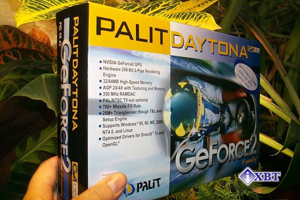 Итак, PALIT Daytona GeForce2 Pro широким потоком хлынули на российский рынок. Почему сразу GeForce2 Pro, а не GeForce2 GTS? Прежде всего потому, что NVIDIA перестала производить и поставлять последний. Хотя, с точки зрения характеристик самого чипа, между ними нет никакой разницы, GeForce2 Pro комплектуется более быстрой памятью. Некоторое время назад, когда видеокарты с такой памятью только начинали вытеснять своего старшего брата GeForce2 GTS с рынка, на них устанавливались микросхемы памяти, поставляемые в комплекте с графическим процессором от NVIDIA. Ныне NVIDIA уже продает GPU GeForce2 Pro без микросхем памяти, и потому на рынке появилось многообразие таких видеокарт, отличающихся друг от друга не только объемом установленной на них видеопамяти, но и частотой ее работы. Спецификация самого GeForce2 Pro осталась неизменной: GPU частотой в 200 МГц комплектуется 64-мя мегабайтами DDR-памяти с частотой работы в 200 (400) МГц. Но в настоящее время это стало не более чем рекомендациями от NVIDIA, которые многие производители не соблюдают.
