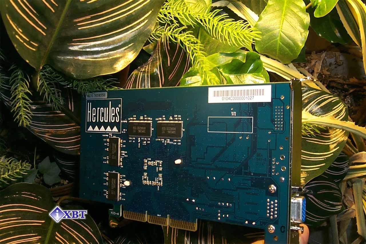 PCB имеет традиционный для Hercules/Guillemot лазурно-голубой цвет, на ней имеются пустые места под микросхемы, отвечающие за TV-out и DVI, соответствующие гнезда также отсутствуют.