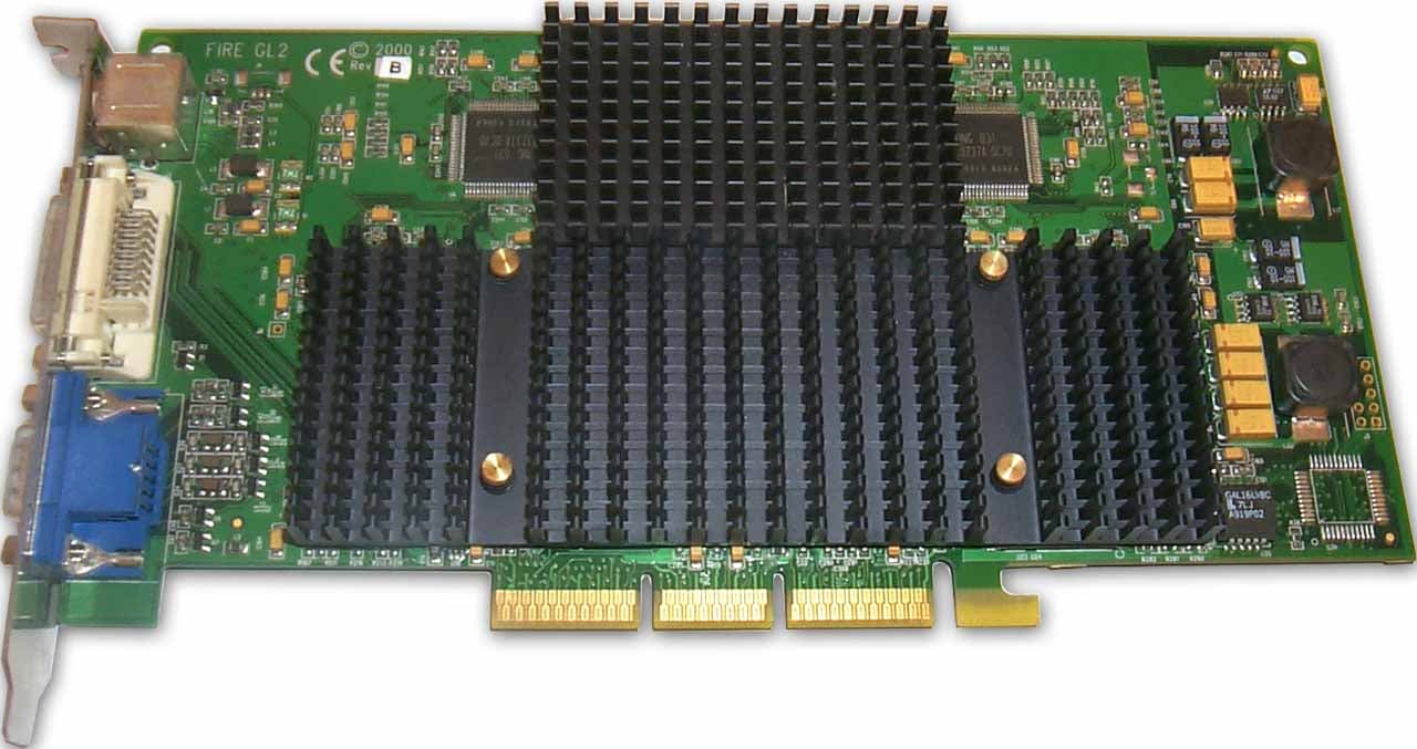 Карта ATI FireGL2 имеет AGP x2/x4 интерфейс, 64 Мб DDR SGRAM памяти, размещенной в 8-ми микросхемах на лицевой и оборотной сторонах PCB.