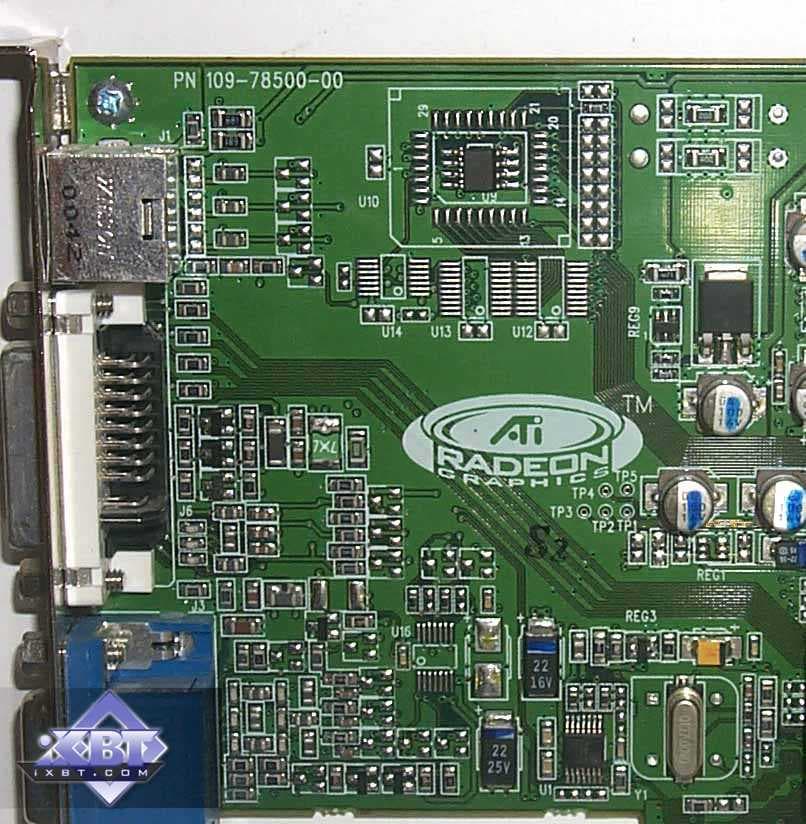 Слева фрагмент PCB RADEON 7500, справа RADEON VE. Как мы видим, несмотря на одинаковое расположение гнезд, дизайн PCB претерпел существенные изменения. Прежде всего это касается участков с логическими элементами, отвечающими за 2D-качество. Ну и сама PCB стала выше, чем мы могли наблюдать у аналогов предыдущего выпуска.