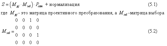 Теперь имея координаты точки P в мировом координатном пространстве, можно получить её проекцию на плоскость z=0 просто путём умножения на матрицу ![]()
