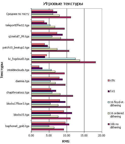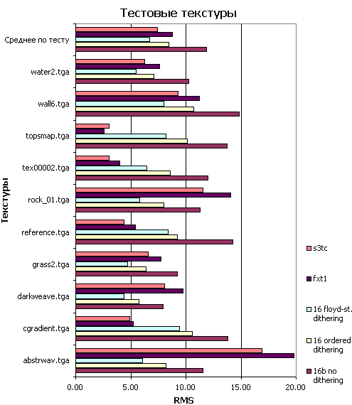 Число FXT1/S3TC показывает, на сколько процентов хуже число RMS при использовании FXT1 по сравнению с S3TC.