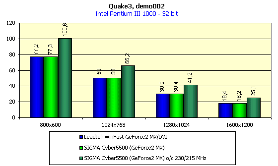 Да и в случае Cyber5500-карт мы видим, что никаких отклонений от обычных GeForce2 MX — карт не наблюдается, а неплохой разгон усиливает приятные впечатления.