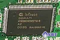 Микросхемы памяти производства Infineon, время выборки 6ns, что соответствует частоте в 166 МГц. На этой частоте память и работает. Подобная память уже стала стандартом для таких карт, мы уже многократно это констатировали. Хотя должен добавить, что разгон у видеокарт на GeForce2 GTS по памяти отнюдь не одинаковый, поэтому не все в данном аспекте зависит от производителя модулей видеопамяти.Дизайн платы, как можно заметить, полностью повторяет эталонный от NVIDIA. Мы можем видеть уже ставший привычным зеленый цвет PCB, а также имеющийся у карты вывод DVI для цифровых мониторов. Интересно заметить закругленные углы у карты, такого еще на моей памяти не было раньше :-).