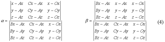- Координаты трех вершин (Ax, Ay, Az), (Bx, By, Bz), (Cx, Cy, Cz).