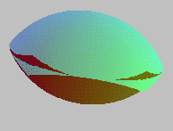 Оказалось, что как бы я ни старался, уголки треугольников торчат в месте стыка. Дело в том, что, как я уже писал, сферический треугольник образуется тремя дугами больших кругов. А это значит, что только в районе экватора нижние грани треугольников лежат в одной плоскости. Но тогда "тарелка" вырождается в сферу. Можно разбить каждую половинку на множество сферических треугольников, но это противоречит самой идее использования этих примитивов.
