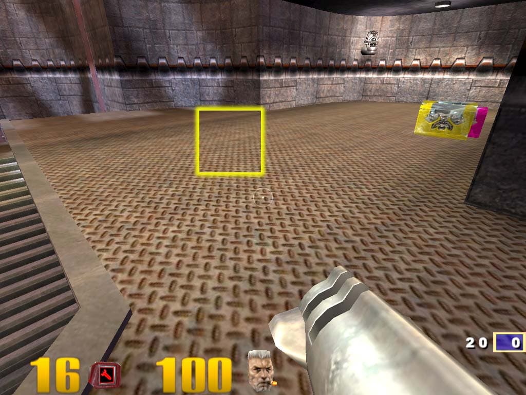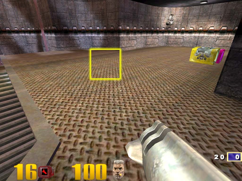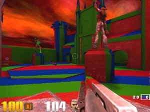 C первого взгляда, два последних скриншота вроде бы не различаются, хотя в динамике отличия видны. Если мы включаем трилинейную фильтрацию совместно с компрессией текстур, то MIP-уровни, вернее, границы между ними, все равно видны, хотя и не так это бросается в глаза. В чем же тут дело? Давайте теперь раскрасим MIP-уровни при помощи переменной r_colorMIPLevels 1 :