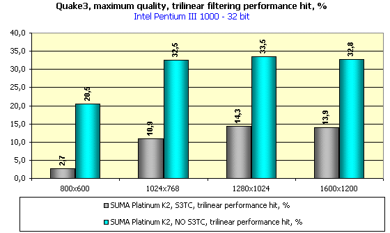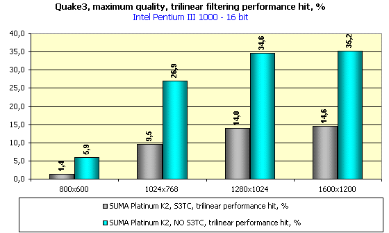 Камнем преткновения остается только активизация трилинейной фильтрации. Посмотрим на падение производительности при включении трилинейки в процентном соотношении: