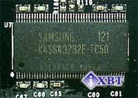 Микросхемы памяти производства Samsung, время выборки — 5 ns, что соответствует 200 МГц. Память же работает на частоте в 175 МГц, как и сам чип. Это связано с тем, что частоты процессора и памяти жестко синхронизированы. Поэтому, как видим, у памяти есть приличный задел по разгону, хотя он абсолютно не реализуем, поскольку ограничен частотой чипа, и ниже в соответствующем разделе мы это рассмотрим.