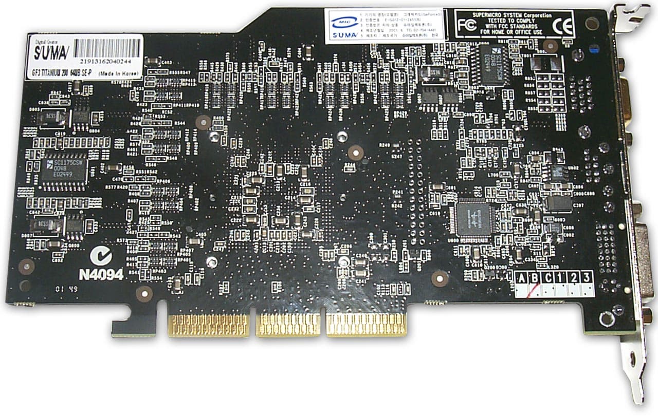 Карта SUMA Platinum GeForce3 Ti 200SE имеет AGP x2/x4 интерфейс, 64 МБ DDR SDRAM памяти, размещенной в 8-ми микросхемах на лицевой стороне PCB.