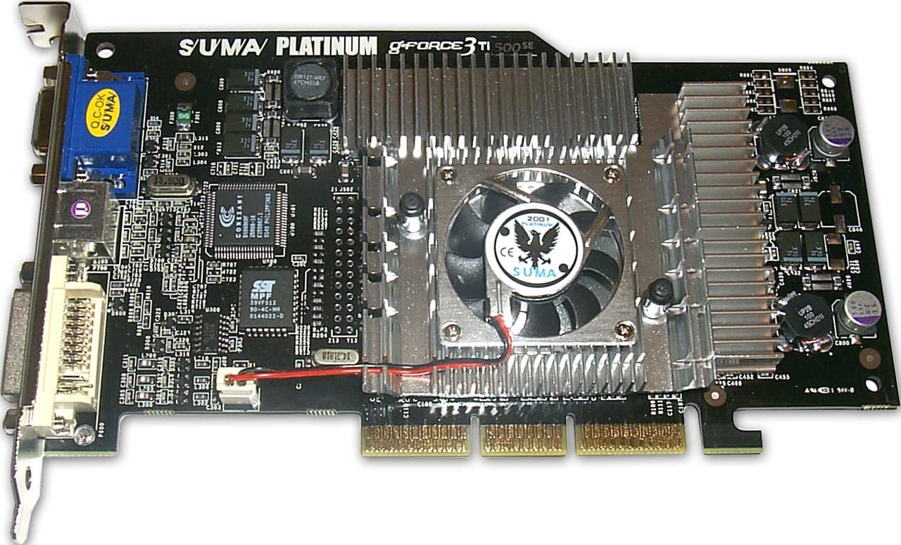 - Относительно низкая цена (примерно на уровне 310 долларов в розницу за SUMA Platinum GeForce3 Ti 500SE и 190 за SUMA Platinum GeForce3 Ti 200SE на середину февраля 2002 года);