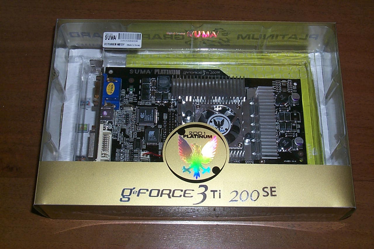 Фирма SUMA всегда отличается тем, что пытается из обычной карты сделать нечто празднично-изысканно-красивое. Все ее карты имеют стильный вид, яркие платиновые надписи, оригинальную подарочную упаковку. Какое-то время назад некоторые карты от этой компании имели недостатки по совместимости с рядом системных плат, но в настоящий момент таких проблем вроде нет. А дорогие карты из ряда GeForce3 вообще с самого начала представляли собой идеальный инструмент для погружения в мир трехмерных игр. И мы переходим к рассмотрению карт от SUMA на базе линейки GeForce3 Ti 200/500. Кстати, у себя на родине по итогам 2001 года эта компания завоевала первое место среди подобных себе фирм-производителей по темпам роста и развития.